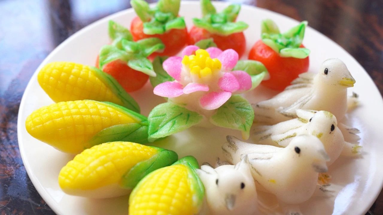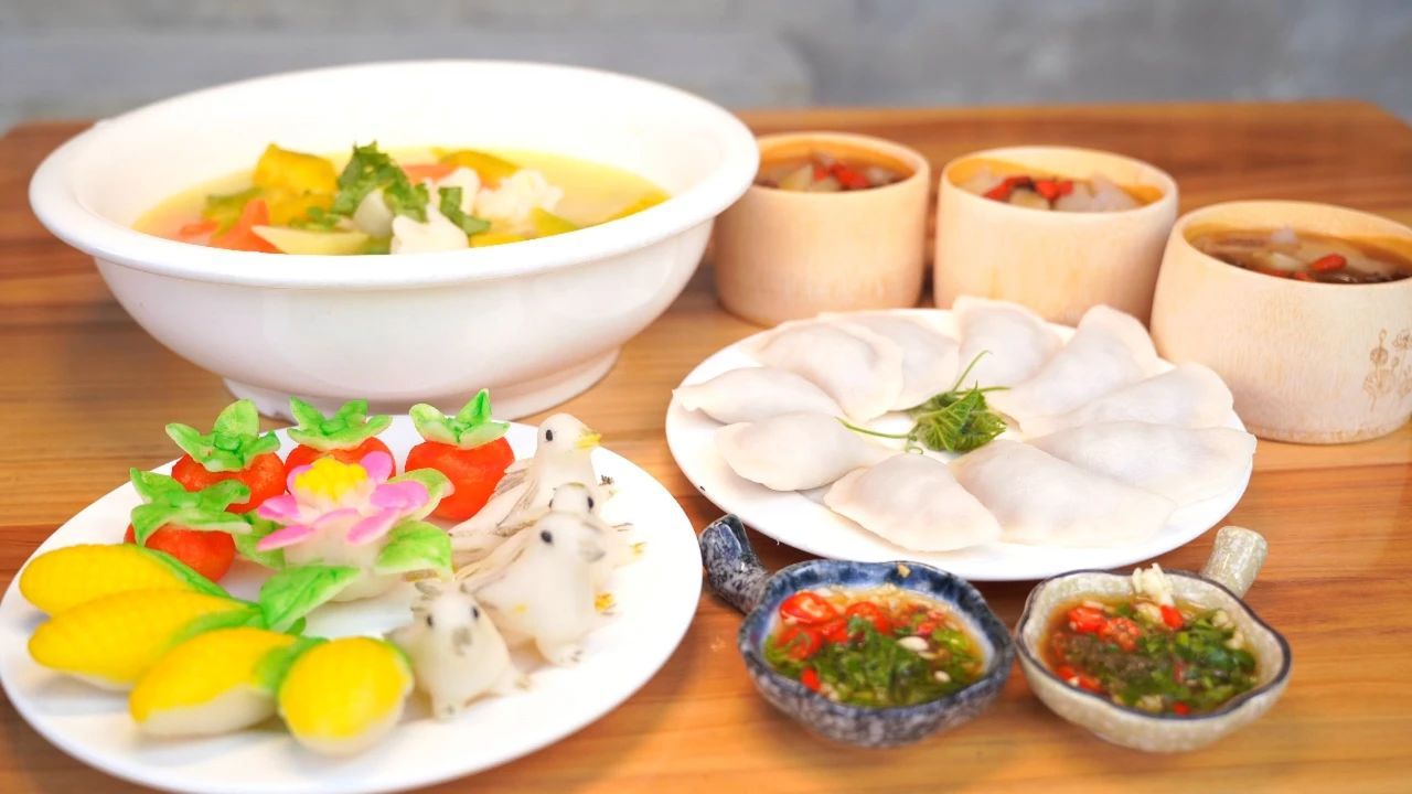 面团趁热捏制成形态各异的动物花卉、水果造型既美观又寓意吉祥吃时可搭配蜂蜜口感喷香软糯成为立冬时节餐桌上的佳肴