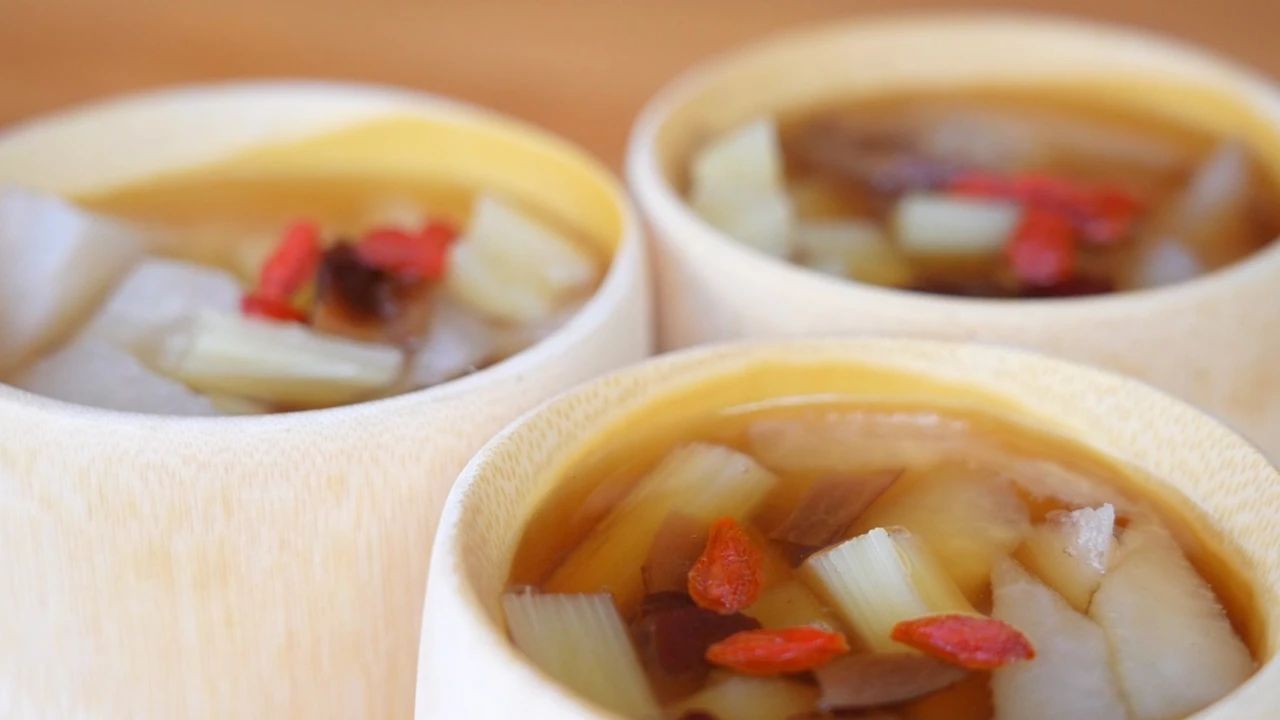 吃面塑时再配上一碗养生甜品甘蔗雪梨水甘蔗和雪梨放入适量水中小火熬煮起锅时加入大枣、枸杞甘蔗的鲜甜与雪梨的清香完美融合清甜滋润还可润肺止咳、清热解毒