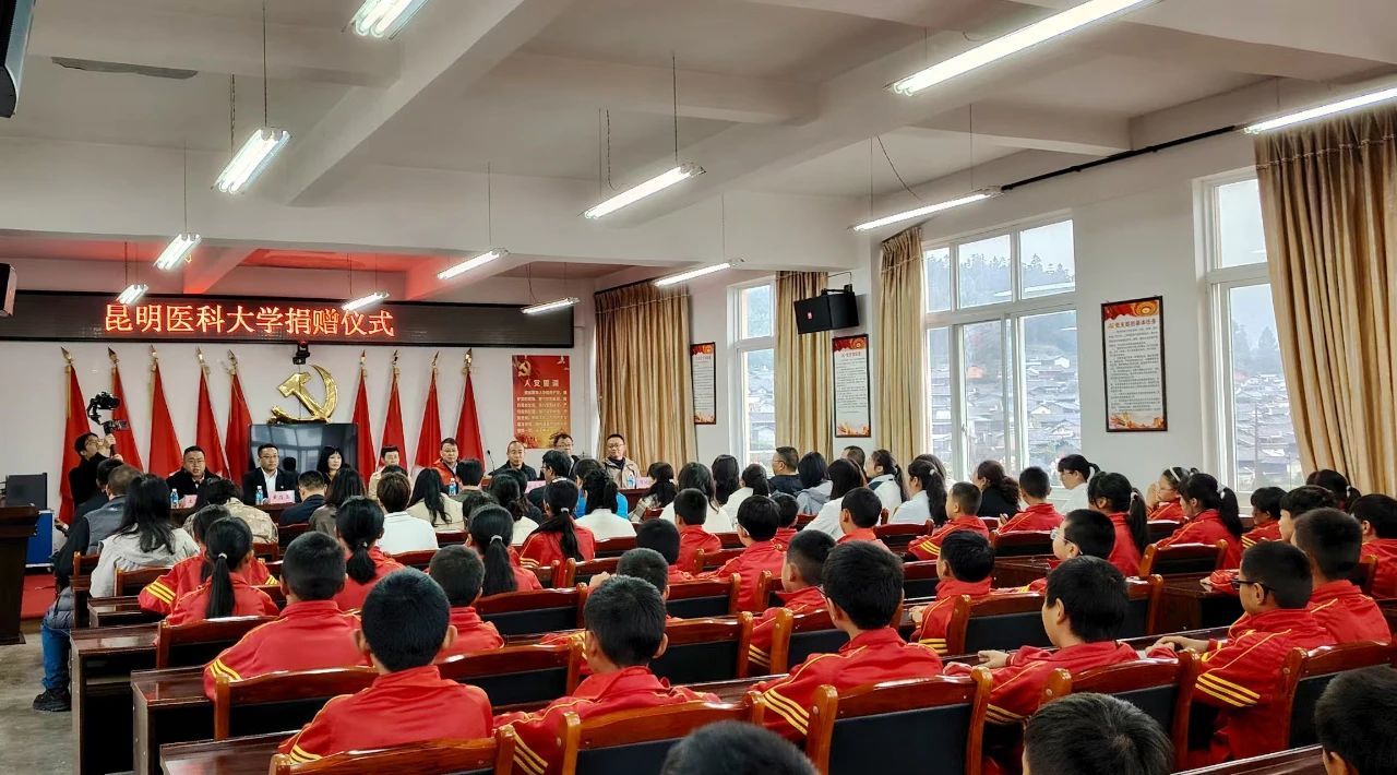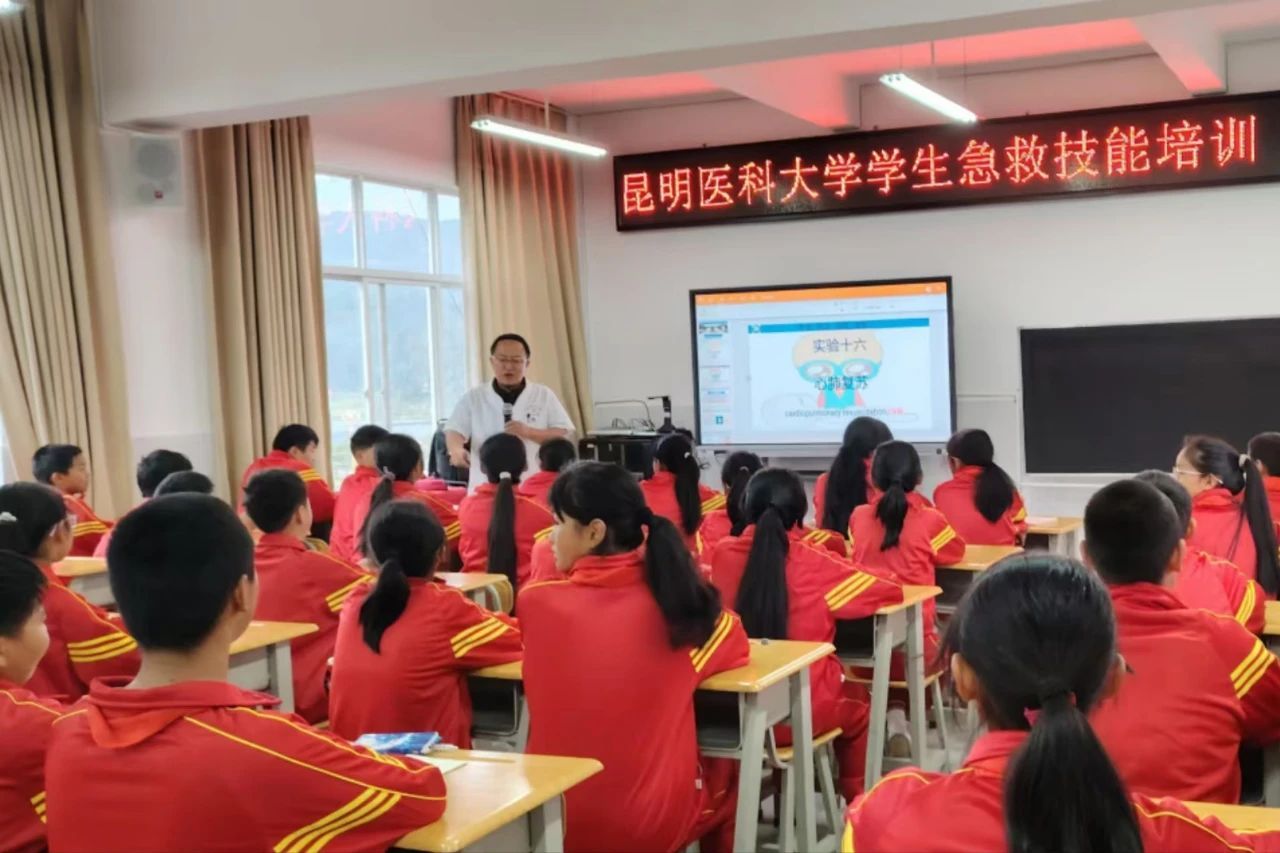 11月21日,昆明医科大学爱心团队赴龙陵县象达小学开展爱心捐赠和急救技能培训。