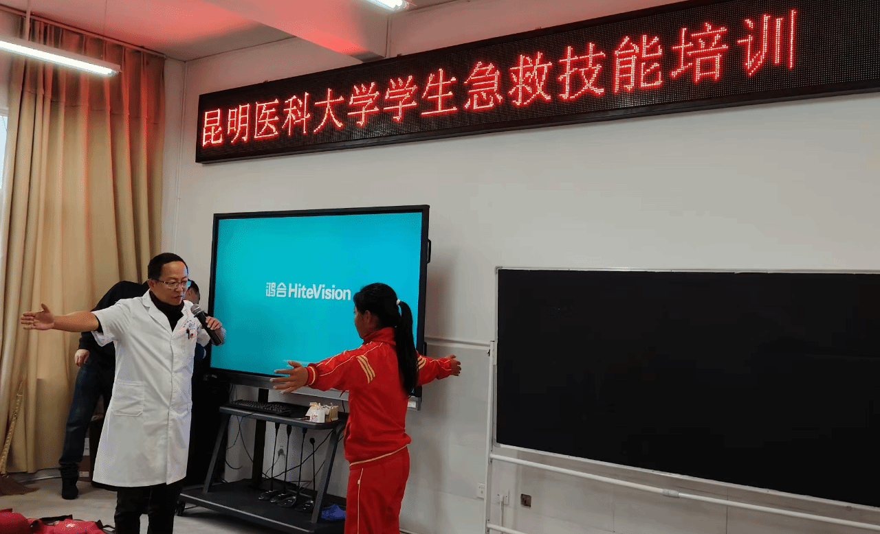 捐赠仪式结束后,昆明医科大学爱心团队还作为象达小学师生开展了急救技能培训。专家们针对小学生活泼好动、易发生意外伤害的特点,向师生重点讲解了常见烧伤、摔伤、鼻出血等意外伤害的处理方法,专家们用生动形象的语言和现场模拟演示,让师生掌握了心肺复苏、海姆立克急救法等急救知识和技能。
