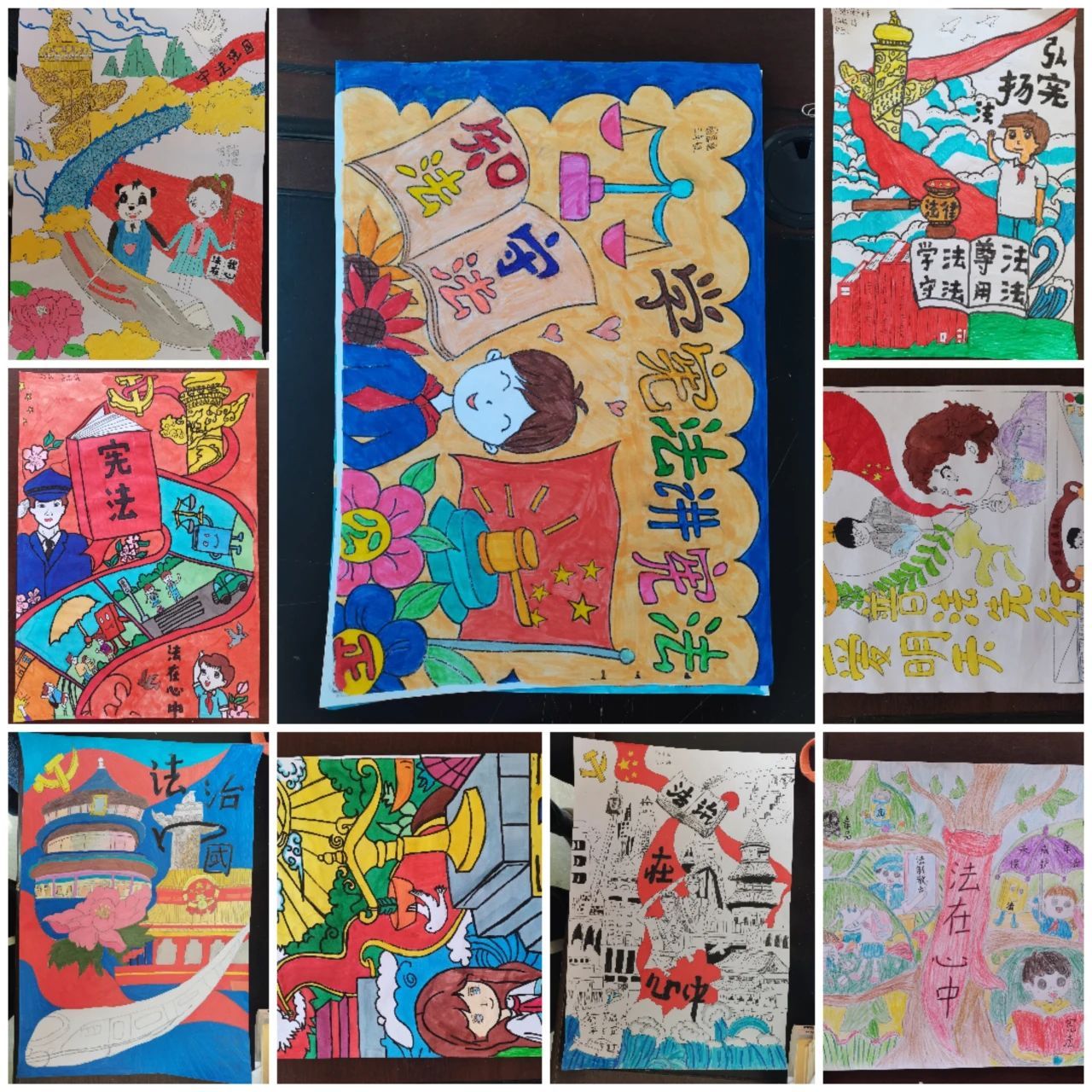 随后,法治绘画比赛正式拉开帷幕。同学们充分发挥自己的想象力和创造力,以宪法为主题,用画笔描绘出自己心中的法治世界。有的同学画了人民警察执法的庄严场景,有的同学画了自己在宪法的保护下快乐成长的场景,还有的同学画了与违法犯罪作斗争的正义使者。一幅幅色彩斑斓、充满童真童趣的绘画作品,不仅展现了孩子们扎实的绘画功底,更体现了他们对宪法的理解和对法治社会的向往。比赛结束后,检察官和学校老师共同评选出了一、二、三等奖,并为获奖同学颁发了荣誉证书和奖品。