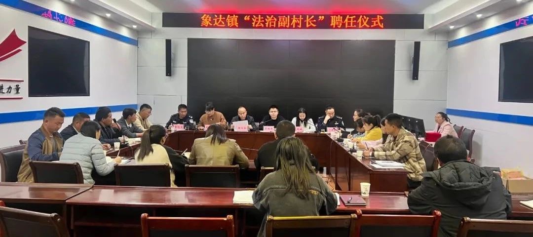 为全面提升基层法治建设水平,12月19日,象达镇组织开展“法治副村长”聘任仪式。会上,象达镇主要领导为此次聘任的15位“法治副村长”颁发了聘书,并对其工作职责进行了明确和要求,“法治副村长”代表作了表态发言。