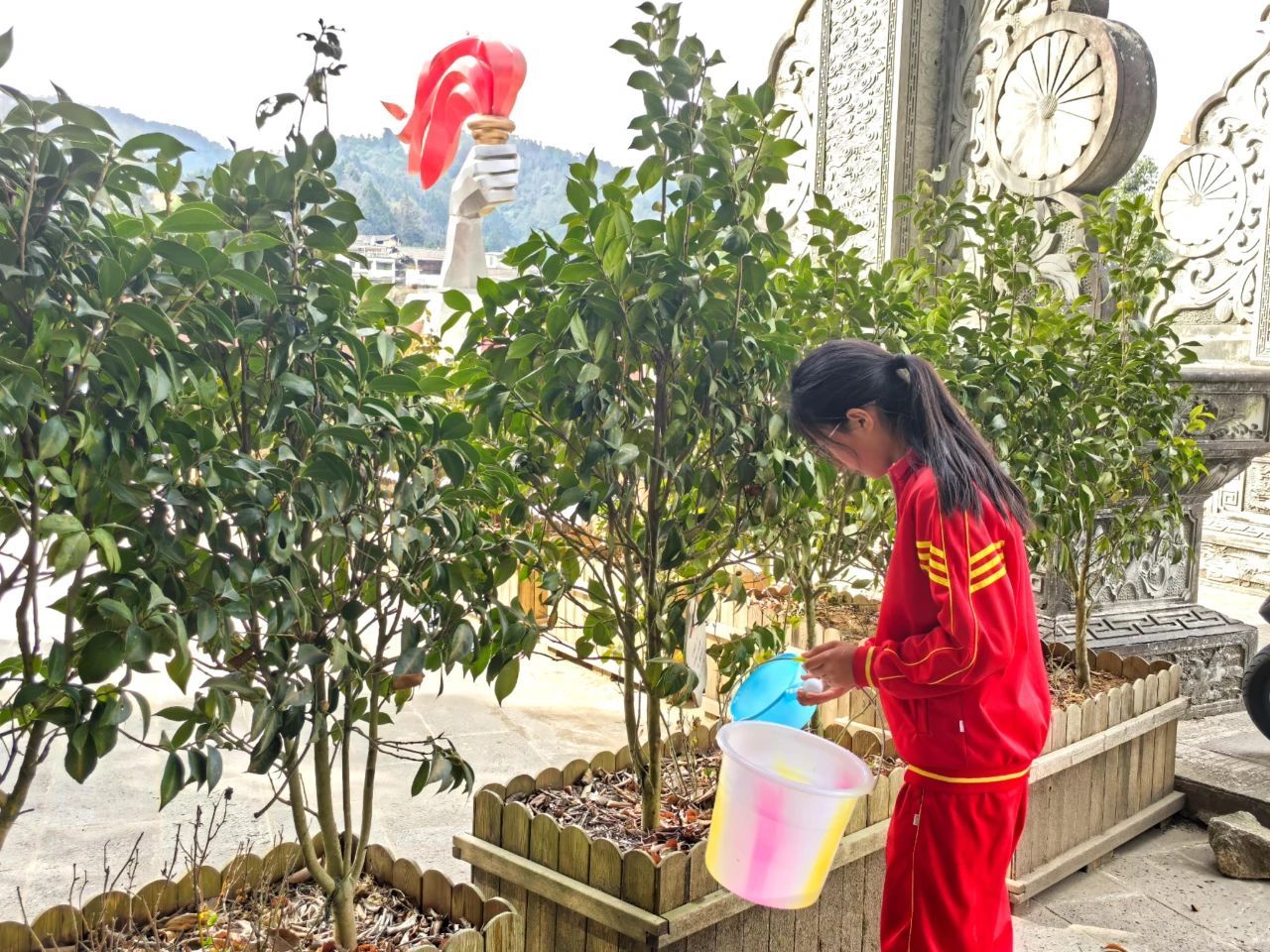 六年级一班的朱先萌同学是参加此次活动的小志愿者之一,她负责管理的16棵茶花位于朱家庄景区的入口处,因为家就在朱家庄,所以她一有时间就会去自己负责的区域看看茶花们长势如何,土干了就浇浇水,花栏里长杂草了就除除草。看着自己管理的茶花们茁壮地生长,她的胸中升起了满满的自豪感。她说:“参加这个活动对我来说是一次充满意义的成长之旅,不仅让我明白了爱护环境、珍爱花草的重要性,还让我学会了如何照顾一个生命,懂得了责任的重量,我会带着这份爱和责任继续传播绿色的希望。”
