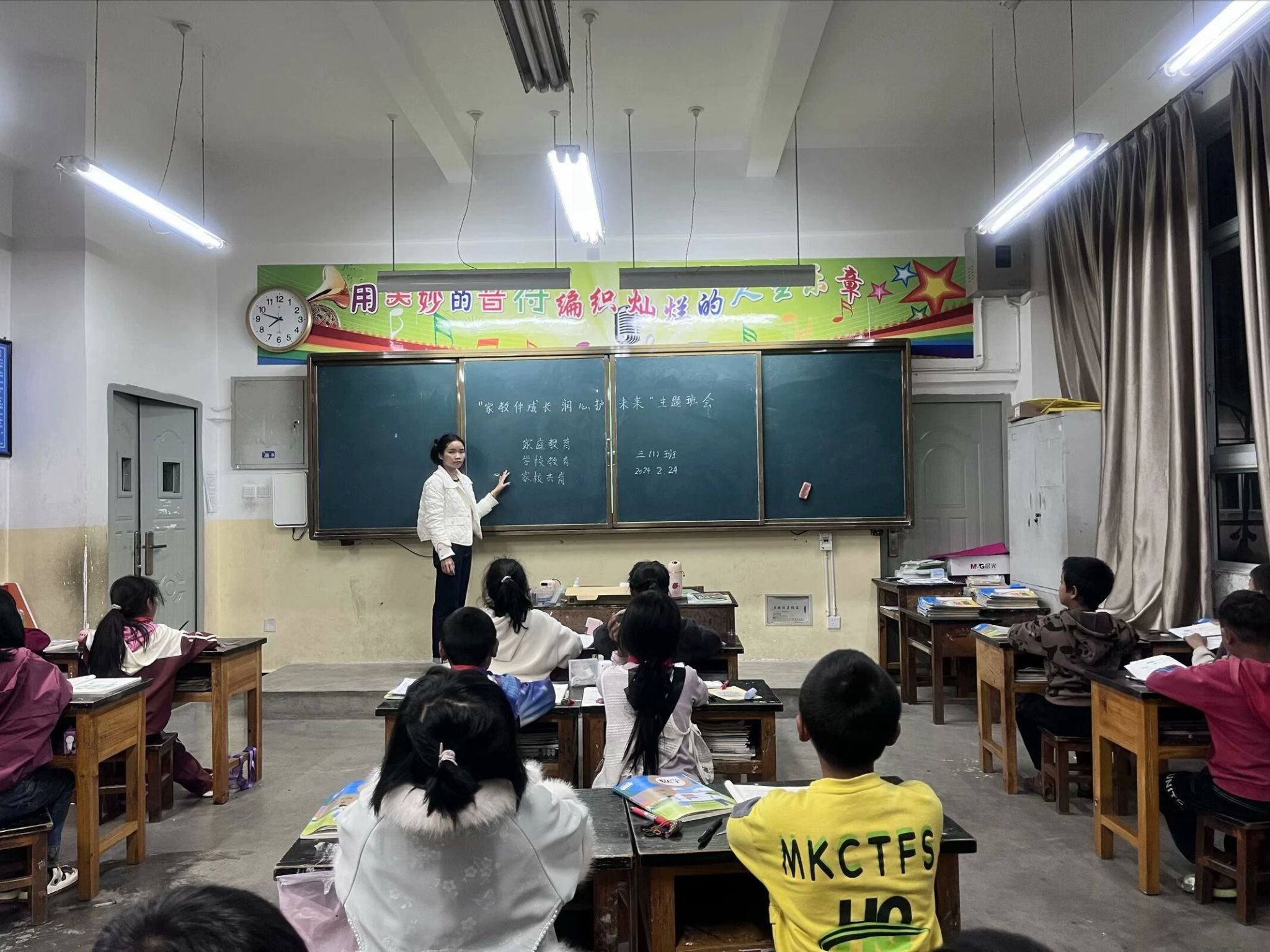 主题班会搭建家校“连心桥”。在棠梨坪村168希望小学主题班会上,心理教师通过“角色互换”“情景再现”等寓教于乐的互动体验,生动解析亲子沟通中的“情绪密码”。家长们手持《家庭教育指导手册》,围绕“手机管理”“学业焦虑”等热点问题展开讨论。特别设置的“家书传情”环节,让孩子们用画笔描绘“我心中的家”,三年级的余静蓉同学在画作中呈现父母陪伴阅读的场景,让在场家长深受触动。