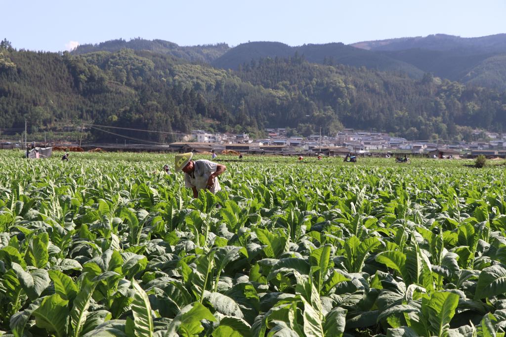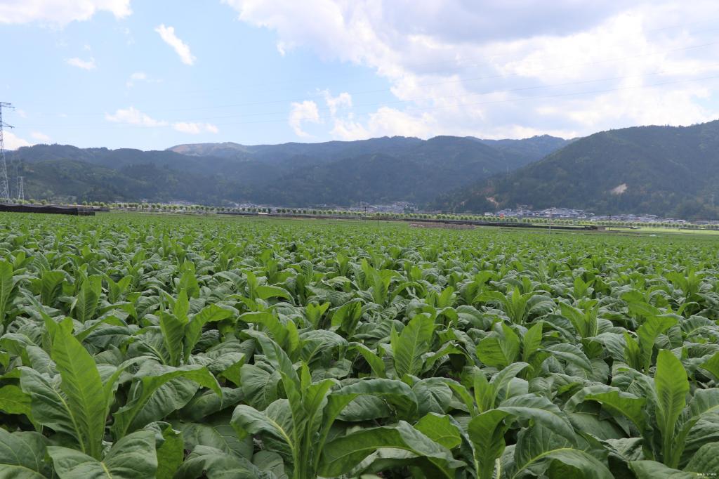 最美人间四月间,莺飞草长春盎然。当下,进入四月的平达坝子,沿着乡道主路两旁的杨柳驱车而行,穿越这个万亩坝子,你会看见坝子里的烤烟长势喜人,全都早已过膝,每一株都已经长出了10多片硕大的烟叶,挤挤攮攮、互不相让,盖满了田里的所有烟墒,在和风中、在煦阳下,株株烟树翩跹摇曳、泛着绿光,把一望无垠的坝子变成了一块翠绿欲滴的璞玉。在翠绿的田野上,农家们头戴斗笠躬身细作,精心呵护着每一株茁壮成长的“摇钱树”,倘若你徜徉于这一片翠绿其间,欣赏到如此的山水田园,定会让你满心舒畅、流连忘返。