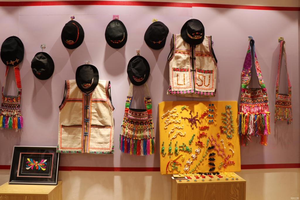 一根针,一丝线,一双巧手,一群傈僳阿花,一针一线、千丝走秀间,绘出一幅幅傈僳族妇女脱贫致富的锦绣画卷。如今的黄连河傈僳族服饰专业合作社展室里,绚丽多姿的傈僳族服饰、精致美观的刺绣饰品琳琅满目,吸引着众多民族文化爱好者纷扰而至,宛如黄连河的漫山繁花盛开,万千闹春的蝴蝶翩跹而来,既呈现出非遗物质文化传承的精彩,也印证了脱贫攻坚东西携手共奔小康路上暖暖的爱。