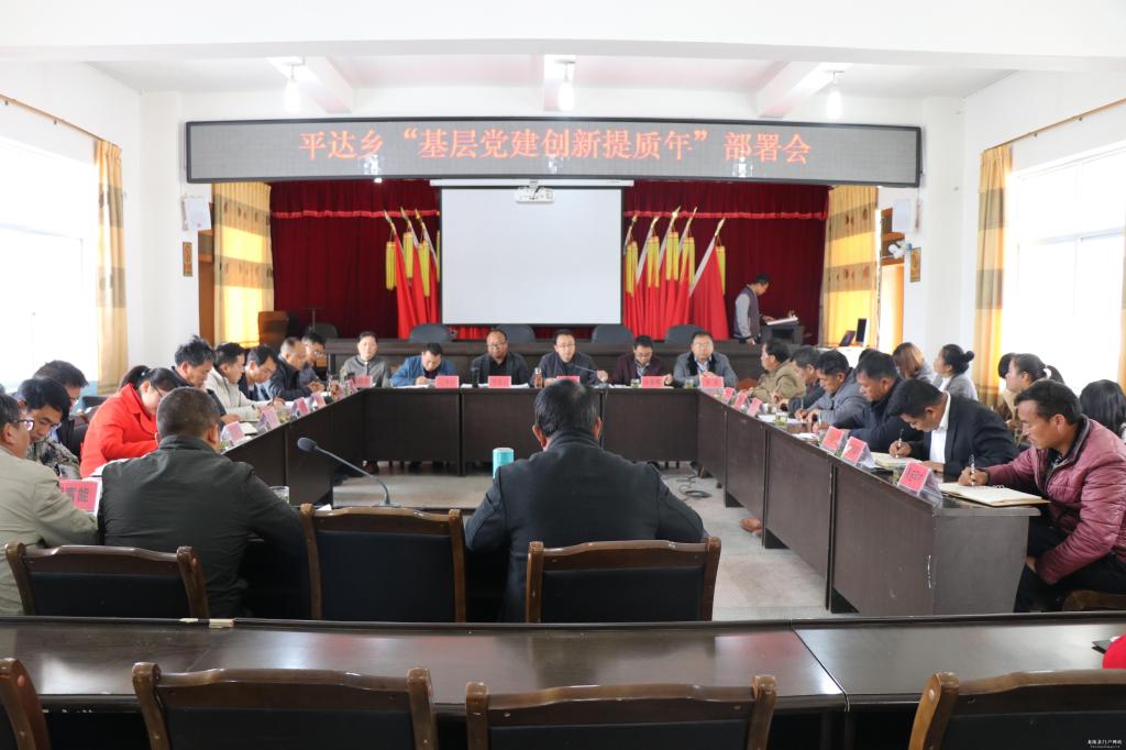 会议传达学习了全县“基层党建创新提质年”工作部署会议精神,并对平达乡“基层党建创新提质年”工作做了全面安排部署,明确了2019年基层党建工作任务。