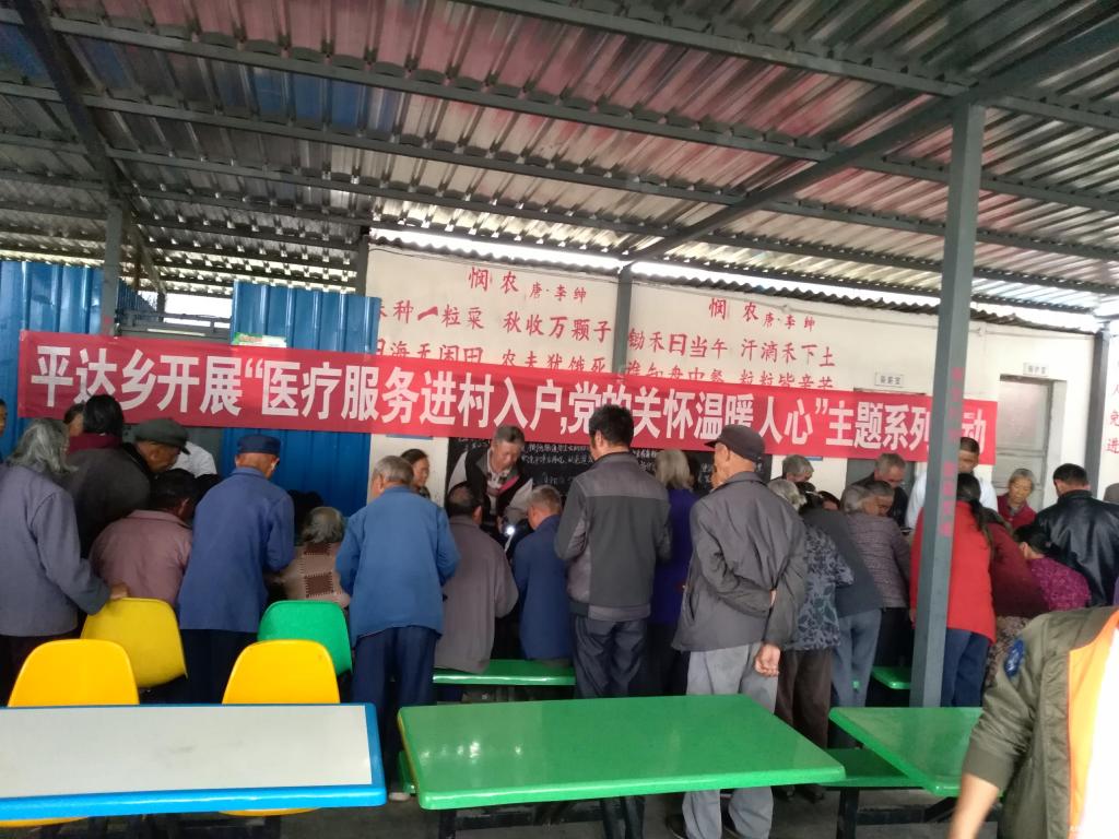 平达乡以卫生院开展医疗服务全覆盖为契机,进村入户,通过用老百姓听得懂、能领会、可落实的语言和方式,把政策宣传做到更加有温度、接地气、振奋人心,让脱贫攻坚政策在群众心中落地生根,提高群众的知晓率和满意度。