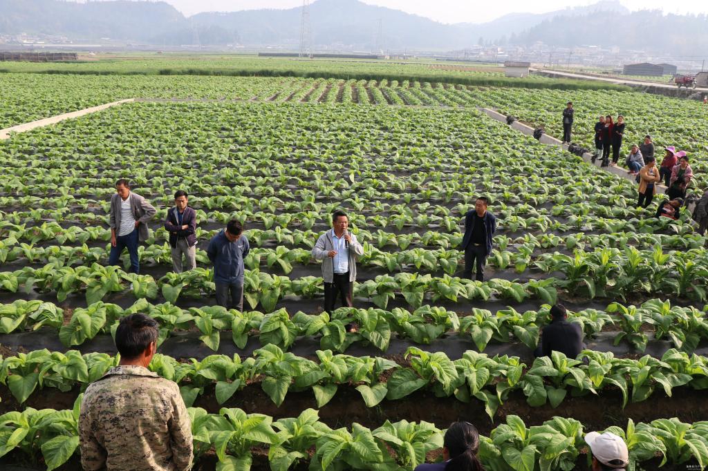 时值初夏,烤烟又绿平达坝子,放眼望去,大片泛着新绿色的烟叶长势十分喜人,托起烟农增收的希望。连日降雨,大大加快了烤烟的生长速度,时下,正是烤烟中耕管理的关键时期,田间地头,只见烟农穿梭在绿色的叶海中,为烤烟揭膜培土、进行病虫害防治,烤烟专业技术人员也纷纷深入田间地头指导烟农加强烤烟中耕管理的各项技术要领,烟农们看得认真,记得仔细。