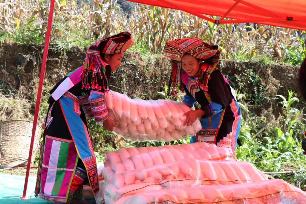 平达乡黄连河村,是一个傈僳族聚居的高寒山区,该村平均海拔2002米,年平均气温10.5℃,作为全乡的高寒山区之一,在种植产业方面主要以发展“近期”产业为主,而该村发展种植的白萝卜,就是“近期”产业中的一种典型代表。他们种植的白萝卜,皮薄肉脆、汁多味甘,清脆可口,有润肺除疾、解毒生津、祛痰、清积、下气和利尿、止泻等功效,特别是从“润肺除疾、解毒生津”的功效来看,其效用不亚于人参,所以白萝卜在当地还有“小人参”的美誉。2020年2月中旬,在湖北疫情防控关键时期,黄连河村的白萝卜曾作为平达乡干部群众捐赠的55吨爱心蔬菜驰援湖北咸宁“疫线”,及时为“疫区”人民解燃眉之忧。