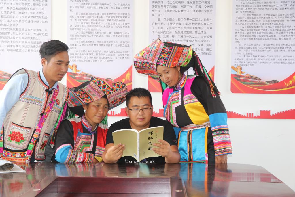 “由于黄连河村有5个村民小组聚居着傈僳族群众,在宣讲党的政策时,我们先用普通话读一遍原文,然后让我们傈僳族干部再用傈僳族语进行讲解,村民就能更好地了解党的惠民政策。”郑世永介绍,党员是党的政策的宣传员和落实者,党员的先锋模范作用的发挥就是要带头学习党的方针政策,然后才能带动村民一起发展。