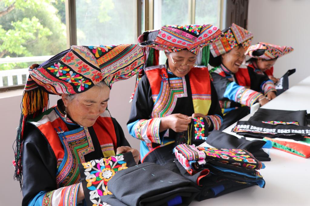 合作社采用“统分结合”运行模式,傈僳族妇女作为生产主体,可以在家或在合作社刺绣,做工灵活。合作社还定期邀请傈僳族民间刺绣能手,对傈僳族妇女进行专业培训,提高刺绣业务水平,实现“培训一人,成功一户,带动一片,致富一方”。在营销上,采用合作社统一接单、统一派活、统一技术指导、统一验收、统一销售、按利分成的模式,并借助上海闵行区销售平台进行成品销售,实现多赢创收,真正让傈僳族妇女从乡村走向工坊。