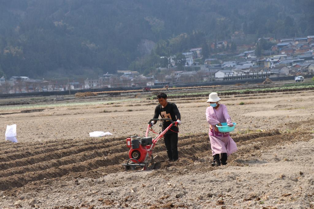 人勤春来早,致富正当时。立春过后,农村复工复产有序推进。田地里随处可见村民们春耕备耕的身影,平达社区大寨组烟农李绍团去年一个人在自家田里尝试种了1.15亩烤烟,收入7800余元,尝到甜头的她今年独自一人在家发展6亩烤烟。“种烤烟收益好,这几年我老公和儿子、儿媳去四川打工了,我在家一边照顾读幼儿园的小孙子,一边发展几亩烤烟增加收入,种烤烟只苦几个月,等收烟和移栽时忙不过来就近找人来帮忙就可以啦”。早晨,太阳刚刚升起,河尾社区烟农曹贵云早早就驾着“铁牛”来到田里,在地里来回翻土,妻子则在一旁紧随其后撒着肥料,呈现出乡村里“你耕地来我施肥,夫妻双双农耕忙”的和谐画面。“我种烤烟已经好几年了,虽然辛苦,但一亩至少有3500—4000元左右的纯收入,去年在自家田里种了7亩烤烟,今年要将种植面积扩大到11亩。” 曹贵云边用袖子擦了擦额头上渗出的汗珠,信心满满地说道。