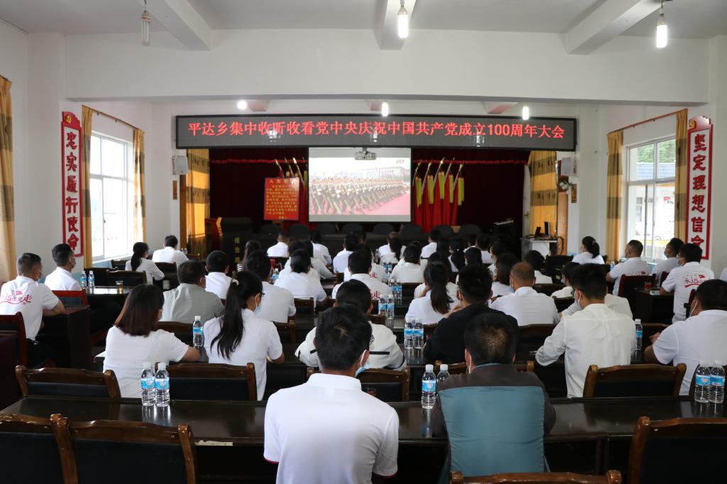 7月1日上午8时,庆祝中国共产党成立100周年大会在北京天安门广场隆重举行,中共中央总书记、国家主席、中央军委主席习近平发表重要讲话。平达乡全体干部职工及10个村(社区)认真收看大会盛况,共同感受振奋人心的时刻,衷心祝愿伟大、光荣、正确的中国共产党更强大、国家更繁荣。
