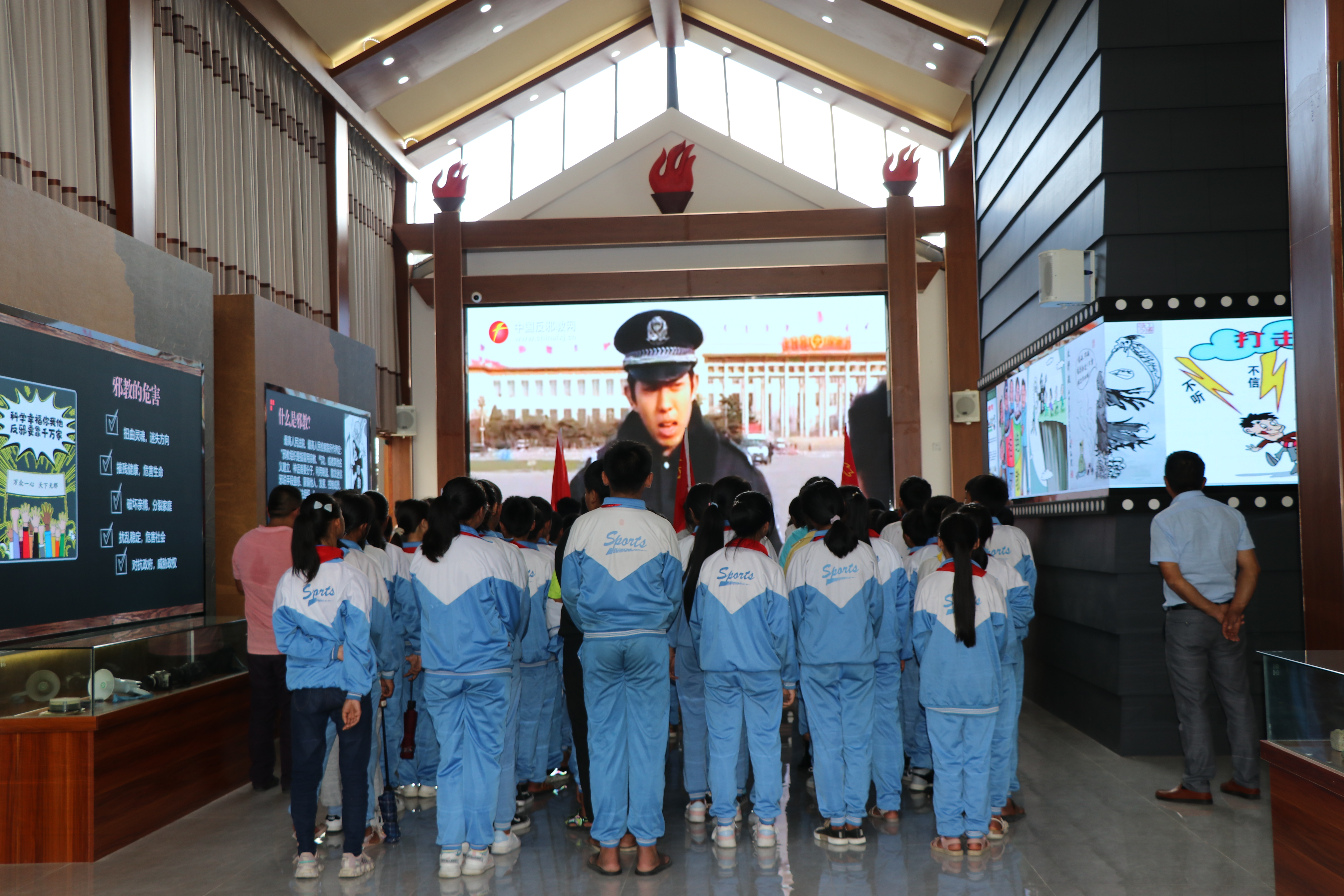 中午时分,来自平安小学的100余名小学生排着整齐的队伍,高举迎风飘扬的旗帜,在老师的带领下,徒步来到位于平安社区民安园的综治中心。