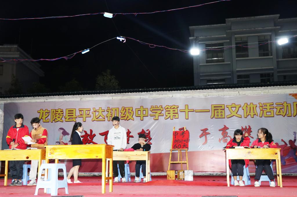 11月24日—26日,平达乡中学举行第十一届文体活动周,此次活动以“放飞梦想、勇于高攀”为主题,旨在丰富校园文化生活、贯彻落实全民健身,为学生们搭建锻炼自我、展现自我的舞台。