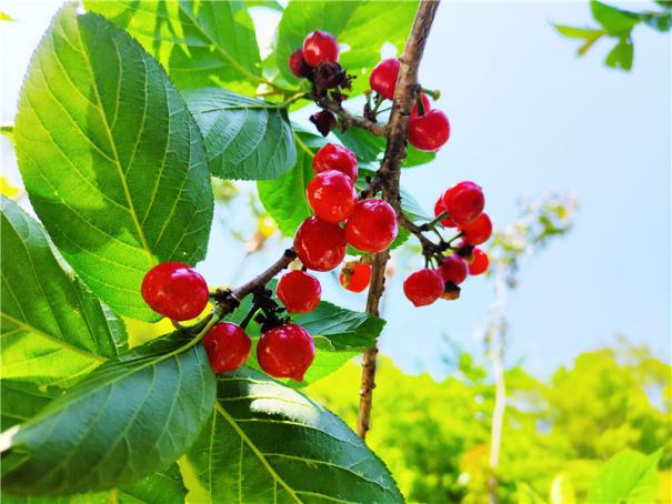行至傈僳族村寨,傈僳族同胞们喜欢在老屋的周围种满樱花。此时,椭圆的绿叶已经遮挡不住樱桃泛红的脸庞,她们三五成群地从绿叶底下探出脑袋,挽留住即将逝去的春色。忍不住伸手摘了最红的樱桃放进嘴里,原来这才是春的味道。深呼吸,这清纯、舒爽的空气顿时弥漫心间、肤发、甚至全身,让人瞬间迷失在这纯天然、无污染的空气中,仿佛在呼吸着最纯净的氧气,全身心都受到了洗礼,此刻脑海一片清明,唯愿抛开一切纷繁俗事,能永久在这青山绿水中独自仰卧,感受这久违的空灵和寂静,呼吸这远山独有的清新空气。