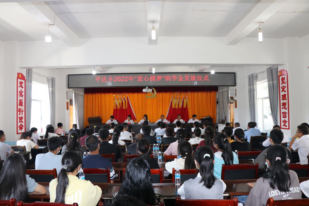 近日,平达乡举行“爱心圆梦”助学金发放仪式,向2022年高考成绩在一本录取线以上的33名同学,中考取得优异成绩的12名同学发放爱心助学款共计8.3万元,为平达乡品学兼优、家境贫困的学子点亮希望、筑梦未来,用爱与真情为平达学子撑起一片梦想的天空。