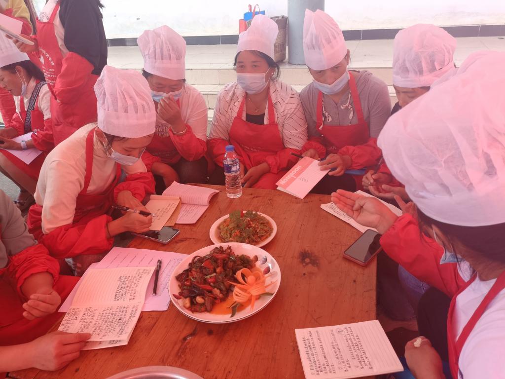 培训过程中,培训老师采取了“理论讲解+现场示范”的授课方式,课程内容紧扣本地受欢迎的菜品样式,对传统美食撒撇、黄焖鸡、干煸土豆丝、麻婆豆腐等农家菜的制作进行了详细的介绍,学员们仔细聆听老师讲解,认真做好笔记。随后,在培训老师的指导下,学员以小组形式有序分工、互帮互助进行烹饪实操,并通过试吃本小组与其他小组的菜肴,评价彼此的优缺点,改进不足,不断提升烹饪水平。