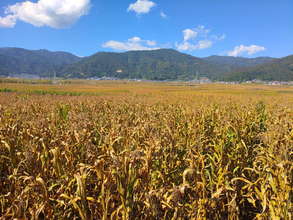冬日的平达坝,不似北方那般萧瑟肃穆,反而给人一片恬淡闲适。万亩玉米在经历了秋季仅剩的热烈后,早已成熟。高高的玉米杆上挂满了硕大的玉米包,将壳子扒拉开来,金黄的玉米在田间格外惹眼。