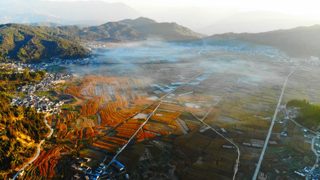 天蓝地阔玉米成浪,硕果丰收一片金黄。冬日,在平达感受湛蓝的天空和令人沉醉的金色风景,这是奋斗的印记和振兴的跨步。扎根这片沃土,把饭碗牢牢端在手上,将丰收的浪漫悉心收藏。