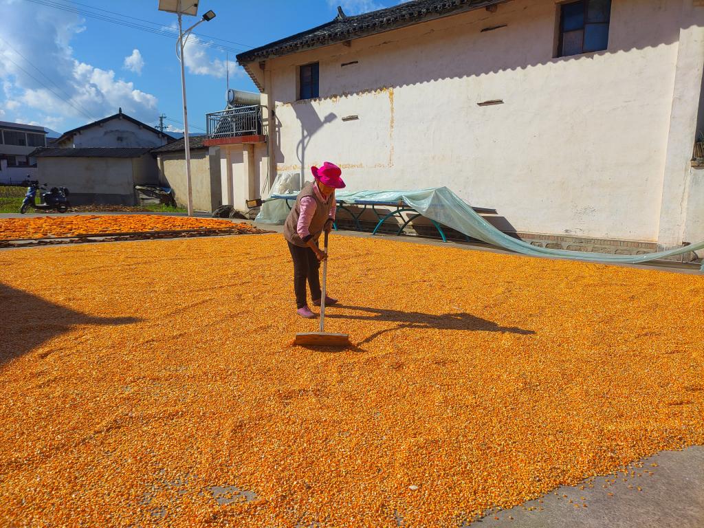 村寨里,远远便能看到晾晒场上一片片、一堆堆金黄的玉米,与干净整洁的屋舍构成一幅美不胜收的画卷。玉米堆间正在剥粒的农家大叔则是满眼的笑意,不用多言便能感受到丰收带给他的喜悦。平达人民用辛勤耕耘来表示自己对这片沃土的珍惜,这片沃土也毫不吝啬的用丰收来回报这份质朴的感情。