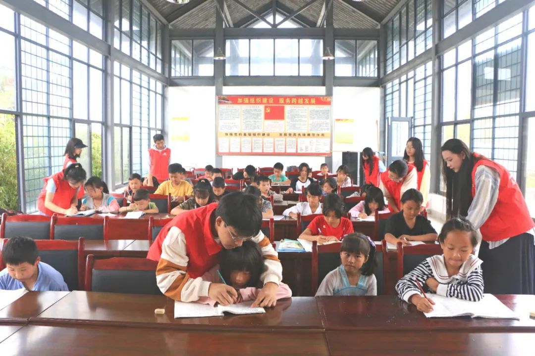 “书籍是人类进步的阶梯”,平达乡将建设农家书屋作为推动乡村振兴的“精神食粮”,积极引导平达群众加强文化知识学习,结合新时代文明实践站,安排专人负责书屋日常运行管理,吸引群众走进书屋,让书屋“活起来”,使农家书屋成为群众精神文化生活和致富路上的“加油站”,为乡村振兴提供充足的知识储备和精神动力。同时,党建引领齐发力,平达乡多个村(社区)积极动员寒暑假返乡大学生,组建大学生志愿队伍,围绕儿童群体,开展课业辅导特色志愿活动,为学生送去知识与陪伴。通过近距离课业学习辅导,将晦涩难懂的知识以浅显易懂的方式传授给学生,从而针对性解决学生放假因隔代教养、亲属辅导能力不足引起的作业不会做、无人可问等问题,真正做到把服务送到群众“家门口”。