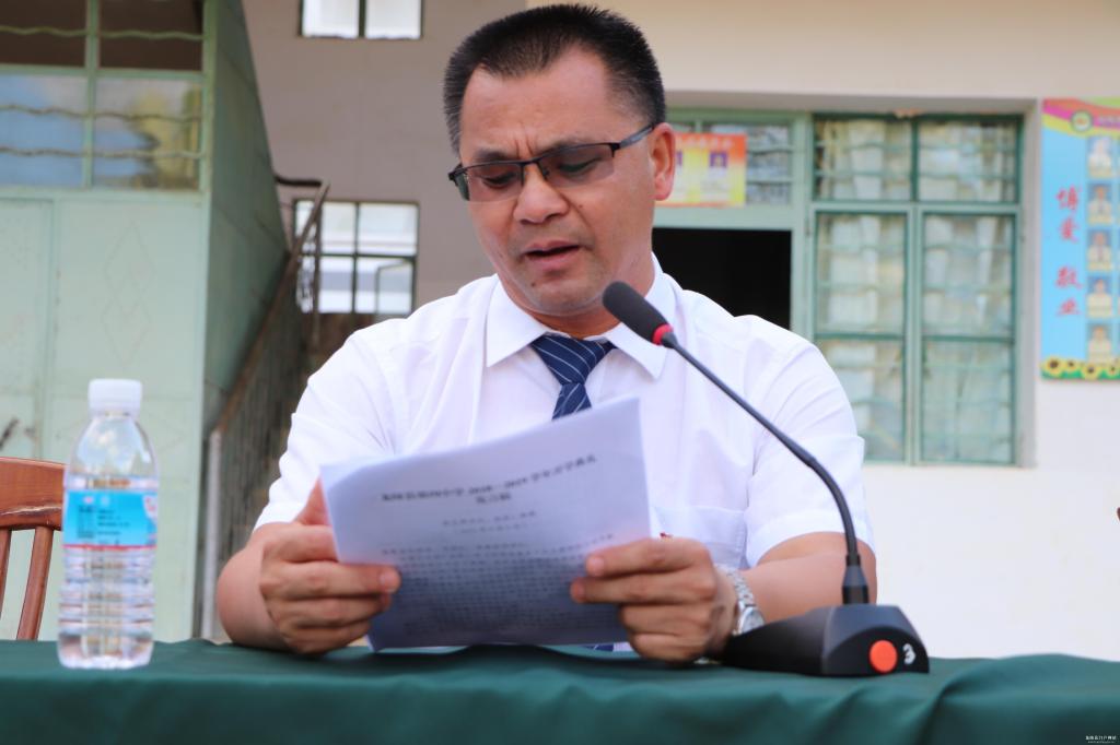 随后学校教务主任杨根良老师宣读了表彰决议,对上学年表现突出的先进班集体、优秀学生干部、“三好”学生,成绩优秀的学生和教师进行了表彰,学校领导为获奖班级和个人颁发了奖品和奖状。