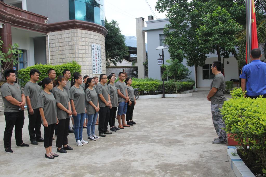 当清晨散发第一缕曙光,青年党支部全体党员统一服装,佩戴党员徽章,到政府大院集合,举行了庄重而简朴的升国旗仪式。鲜艳的五星红旗冉冉升起,全体人员凝视着国旗,大家不约而同齐声高唱国歌,共同见证这个庄严而神圣的时刻。