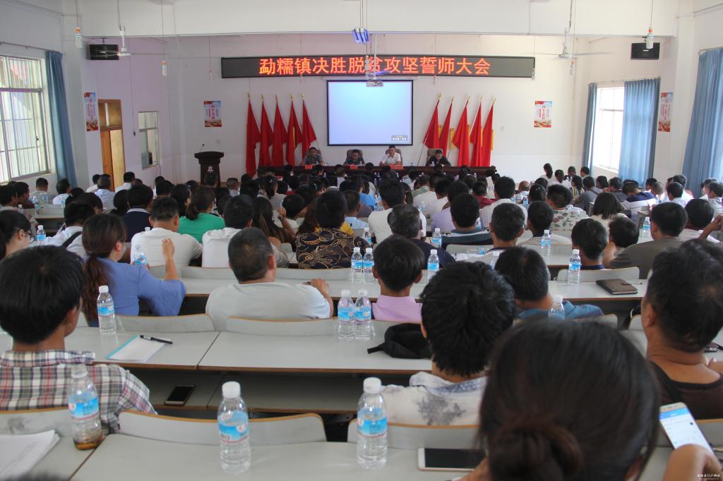 为深入学习领会习近平总书记扶贫开发战略思想,迅速贯彻落实中央和省市县对脱贫攻坚工作的系列决策部署,以及5月5日召开的全县脱贫攻坚誓师大会精神,5月11日,勐糯镇召开全镇决胜脱贫攻坚誓师大会。镇班子成员、市县挂包单位领导、镇内全体挂包干部、驻村工作队、各村(社区)干部、村下设党支部书记、村民小组长共计300余人参加会议。
