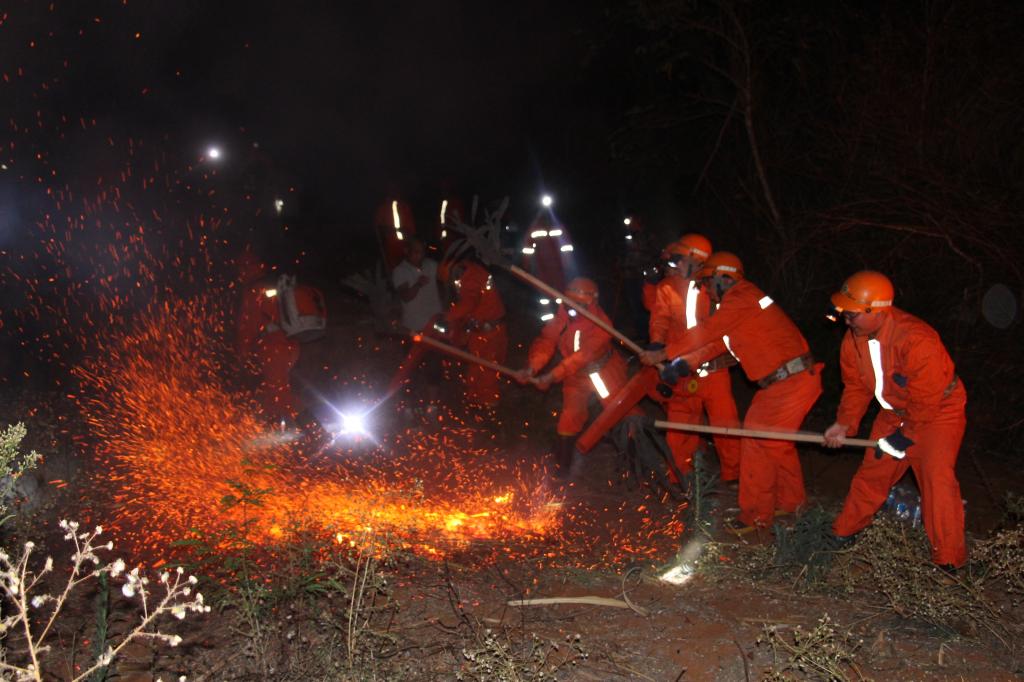 “报告!着火面积超过2亩,火险等级4级,东南风2级、现场主要以甘蔗叶和人工林为主、火势难以控制”随即,扑火人员立即组织开辟森林防火隔离带,利用风力灭火机和水枪分两组沿火线两翼扑打、应急扑火队用二号工具清理余火。