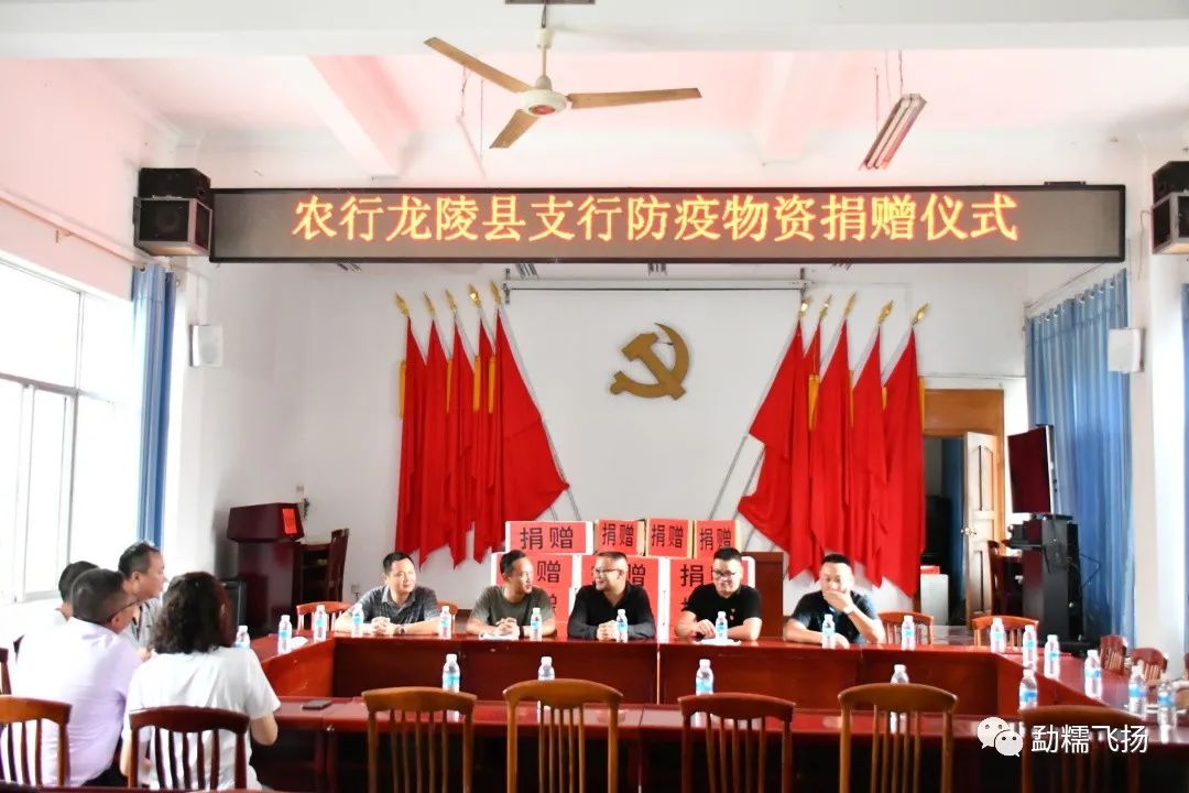 2021年8月14日,中国农业银行保山分行副行长杨雪光、财务总经理段丽江,龙陵县支行行长范正琦,代表中国农业银行爱心捐赠一批了价值29488元疫情防控医用物资(包括洗手液120瓶、二氧化氯消毒片200瓶、隔离防护面罩50个、一次性防护服30套、一次性无菌医用外科口罩500个),以实际行动助力勐糯镇疫情防控工作。