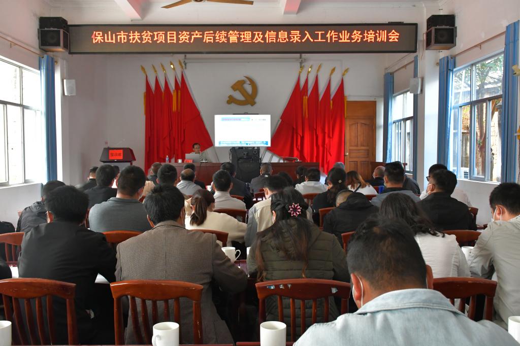 为贯彻落实全省扶贫项目资产后续管理工作推进会议精神,全面加强全市扶贫项目资产后续管理工作,按时按质完成扶贫项目资产确权移交和信息录入工作,保障脱贫的稳定性和可持续性,巩固提升脱贫成果。11月8日,全市扶贫项目资产后续管理及信息录入工作业务培训会在龙陵县勐糯镇召开