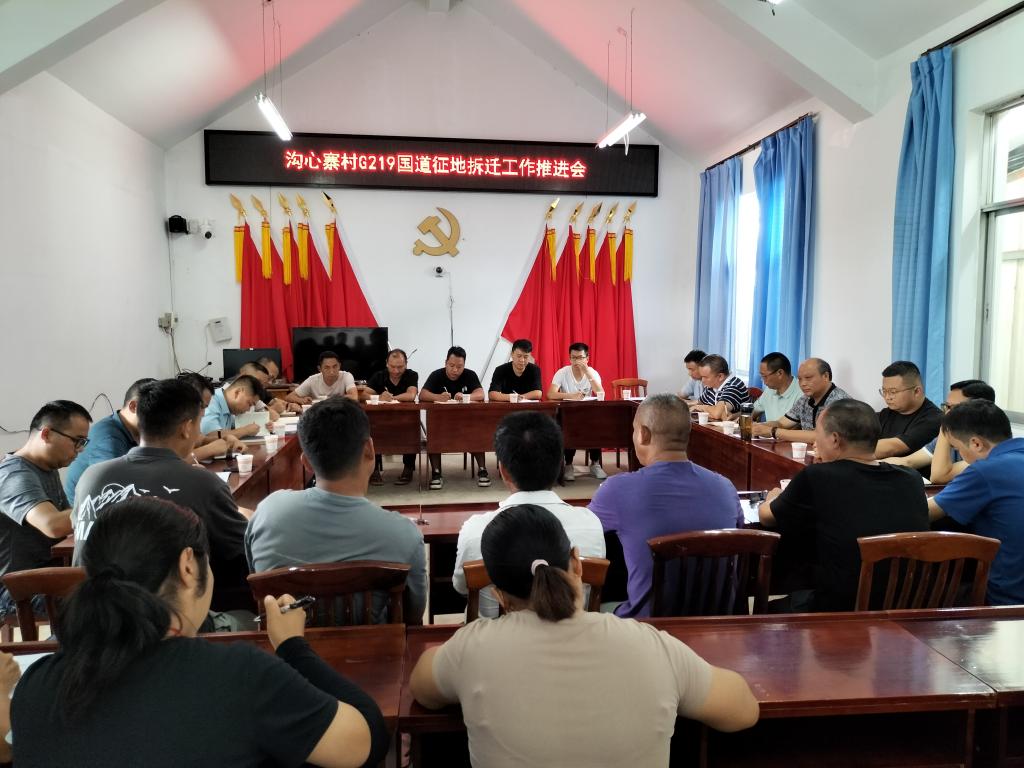 为顺利完成G219国道征迁任务,保障项目顺利建设,近期,沟心寨村“两委”紧紧围绕上级各项工作要求,实行时间倒逼、任务倒逼、分节点推进等方法,通过召开群众会深入细致做好群众思想工作和征地拆迁政策宣讲,千方百计获得群众的理解、配合与支持,形成干群齐心全力推进国道建设的浓厚氛围。征迁队员每天翻山越岭,现场测勘,仅用五天便完成了4.37公里215亩的征迁任务,用真心诚意、担当负责跑出了G219国道征迁中的“沟心速度”。