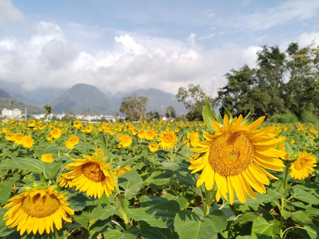 这一金秋,小海旁成片的向日葵陆续成熟,弯下了“腰”,一饼饼饱满的花盘,一颗颗鲜香的瓜子是每一朵向日葵沐浴一夏的阳光后给我们的最后一波回馈。