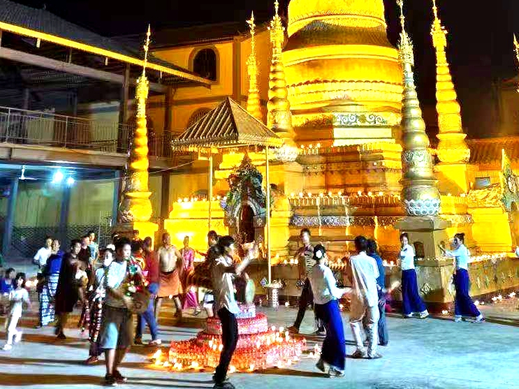 月影婆娑,翠竹摇曳,清风悠然,傣韵欢歌。大榕树下,声声旋律阵阵鼓响是傣家“小仆少”“小仆冒”在欢歌打跳一同“尝新”庆国庆、喜迎党的二十大。