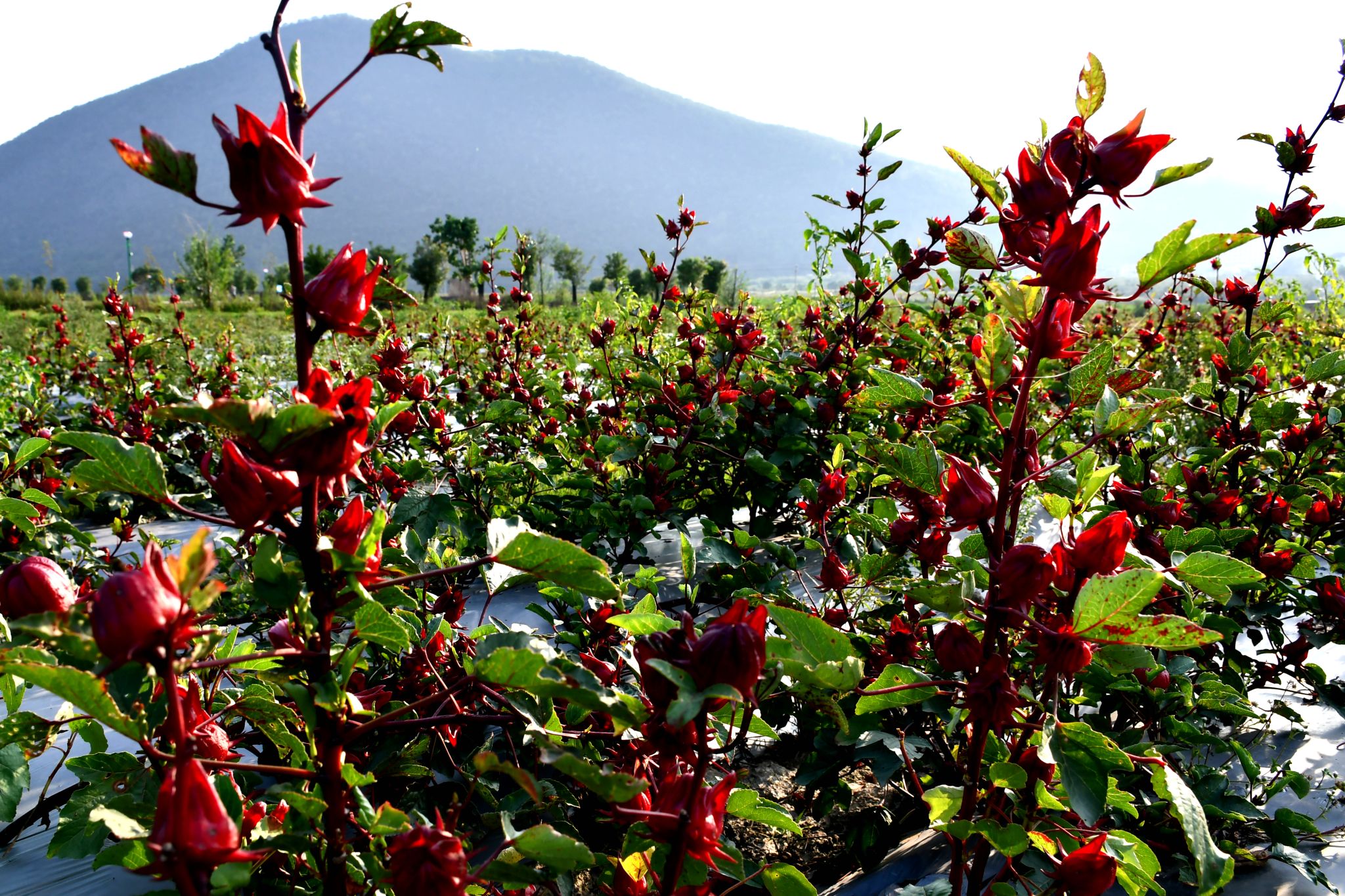 洛神花学名玫瑰茄,又叫洛神葵、山茄等,一般在秋天开放,花萼杯状,红艳粲然,十分美丽。它不仅“颜值高”,而且“医术好”,花、果等均可入药,富含花青素、有机酸等多种成分,能够清热解毒、美容养颜、降血压、降血脂,颇受欢迎。
