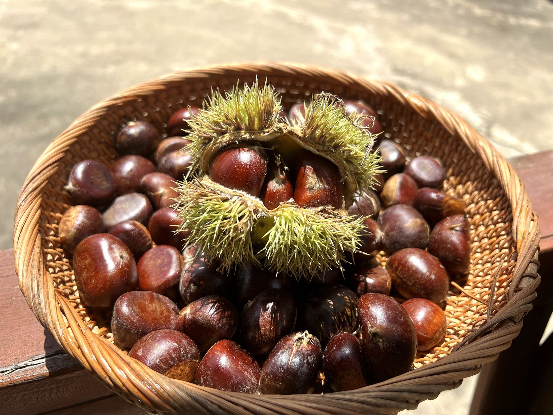 板栗的处理是一门“有粗有细”的手艺活:先大力掰开海胆般的刺壳,接着用砍头砍开棕色的“外套”,最后用刀尖轻巧剥离褐色的“内衫”,一颗金黄诱人的板栗便出现了。