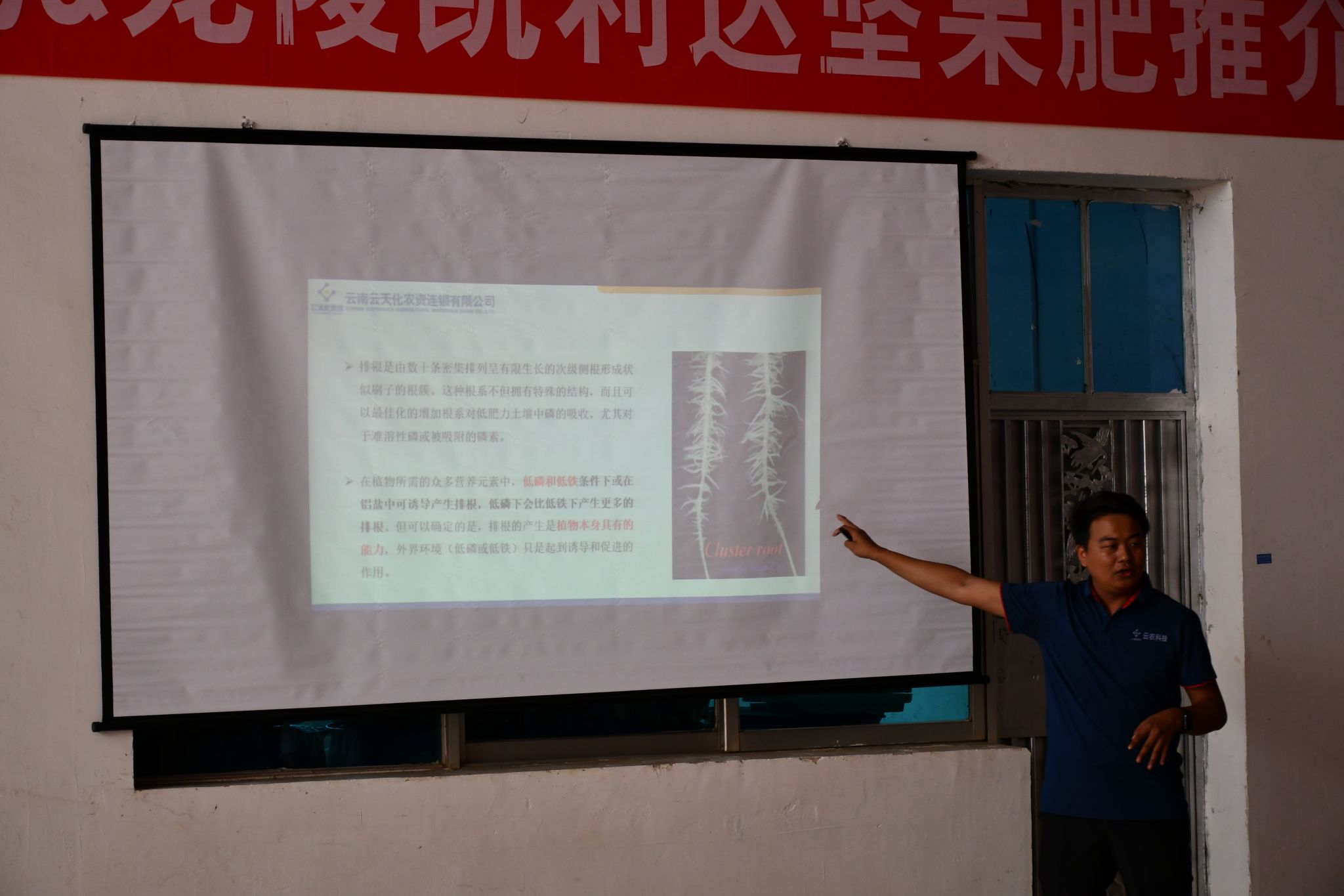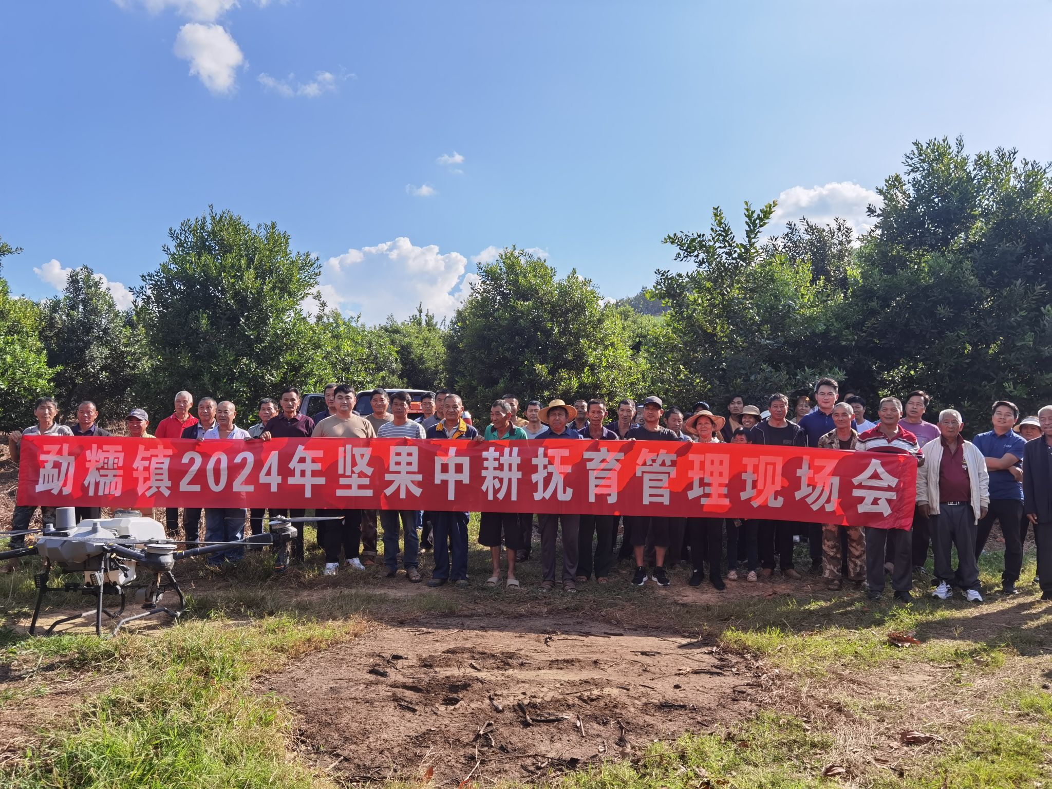 此次培训采用了“室内理论教学+基地实操演示”的复合教学模式,对坚果的全方位、深层次管护技能进行了系统而详尽的传授。在培训现场,技术人员不仅理论讲解深入浅出,更上手示范操作,围绕施肥技巧、修剪策略、高效嫁接方法及无人机植保等坚果提质增效的核心技术,对参训种植户进行了全面而细致的知识普及。同时,面对种植户们提出的各类疑问,技术人员耐心解答,提供了科学严谨且极具实用性的技术指导与实践经验分享,营造了浓厚的学习氛围。