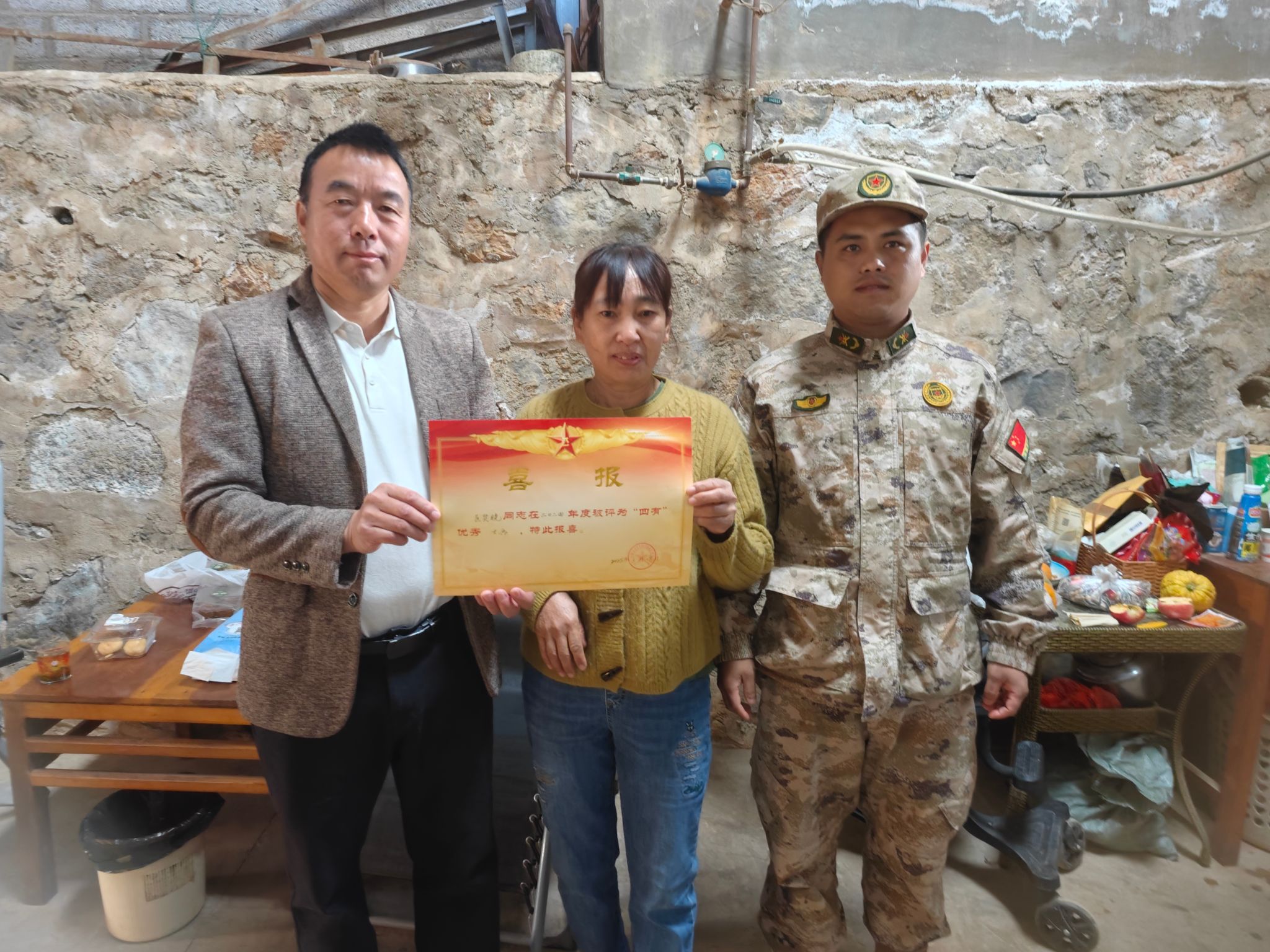 近日,勐糯镇退役军人服务站和武装部工作人员,满怀崇敬与喜悦之情,前往田坡村为荣获“四有”优秀士兵称号的杰出青年及其家庭送上满载荣耀的喜报。此举不仅是对该士兵卓越个人成就的公开表彰,更是勐糯镇对军人及其家庭深切尊重与关怀的集中体现。
