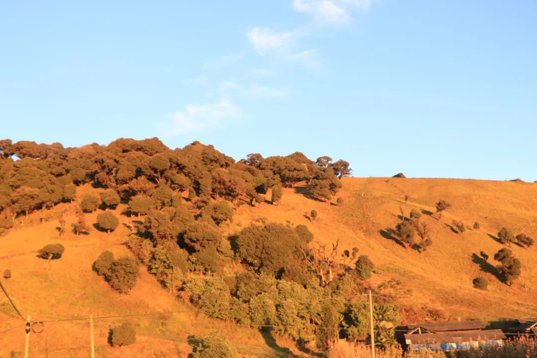午后,整个草山万籁寂静、天高云淡,羊群漫步其中,用“咩咩”召唤它们,它们会扭头呆呆地望着你,牛儿三五成群,从身旁走过,悠闲地散步、吃草,你可以把你的不开心说给老牛听,困顿疲倦可以被它的一脸呆萌化解,画风会变得和谐有趣,内心会变得宁静而自然。