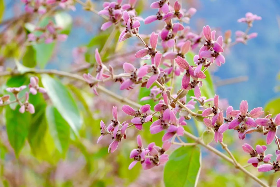 徜徉在春意萌动的村野田间,远远望去,绒苞藤繁花锦簇,密密麻麻,宛如飞舞的蝴蝶挂满藤蔓,给木城披上了毛茸茸的花衣。