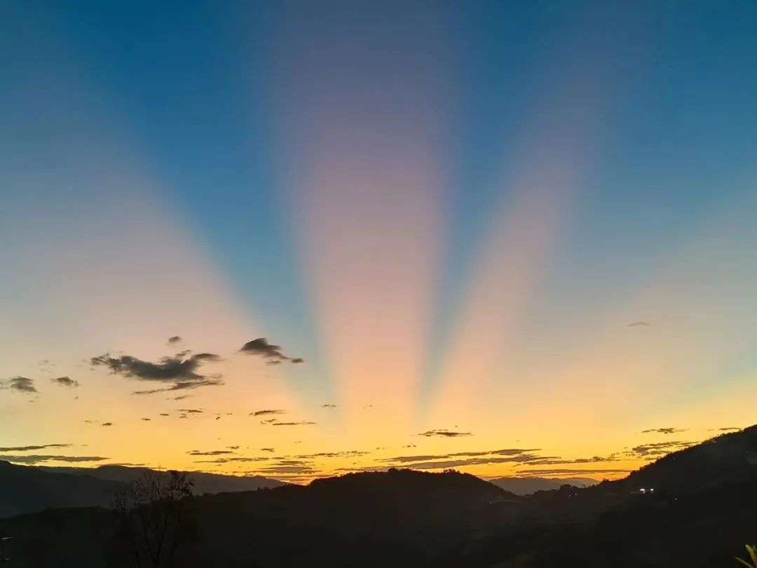 木城的傍晚时分,总有一种魔力会让你过目不忘、惊叹不已。夕阳渐渐西沉,在橘红色的光映衬下洁白的云彩变得丰富多彩,粉的、红的、橙的、黄的,多彩的晚霞在奇妙地变换着,颜色越变越深,最后绘出一幅幅不同的重彩画,这是属于木城的浪漫。