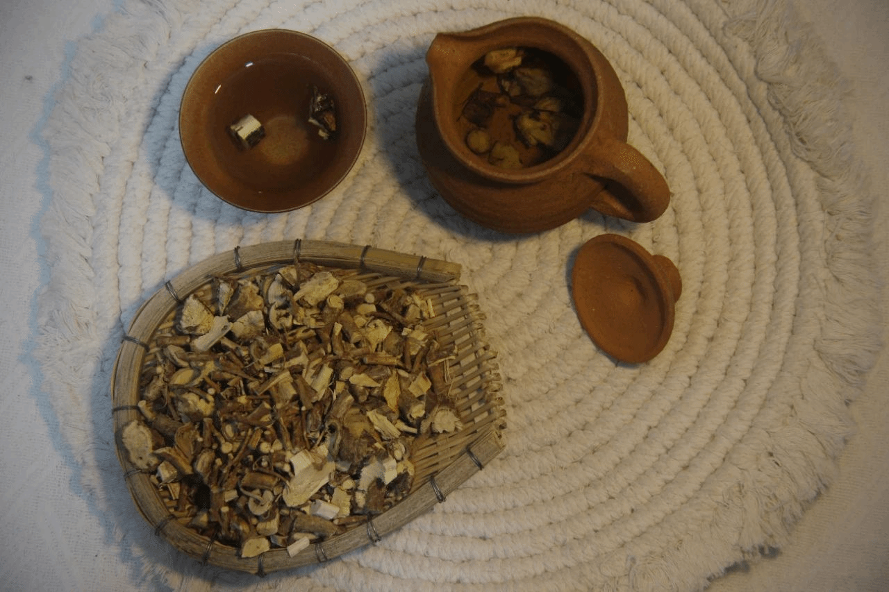 散黄草是木城的一种药用植物,有清热解毒、平肝健脾、养肝护肝的功效。木城当地人取它的根茎部分入药。在龙陵很多地方都有这种食药同源的灌木,但为木城乡最为分布广。它的加工非常简单,只需用锄头等工具把它的根系从土中挖出来,去除枝干部分,洗净后按照需要截成不同长度的小段或薄片后在烈日下晒干放入口袋密封即可。
