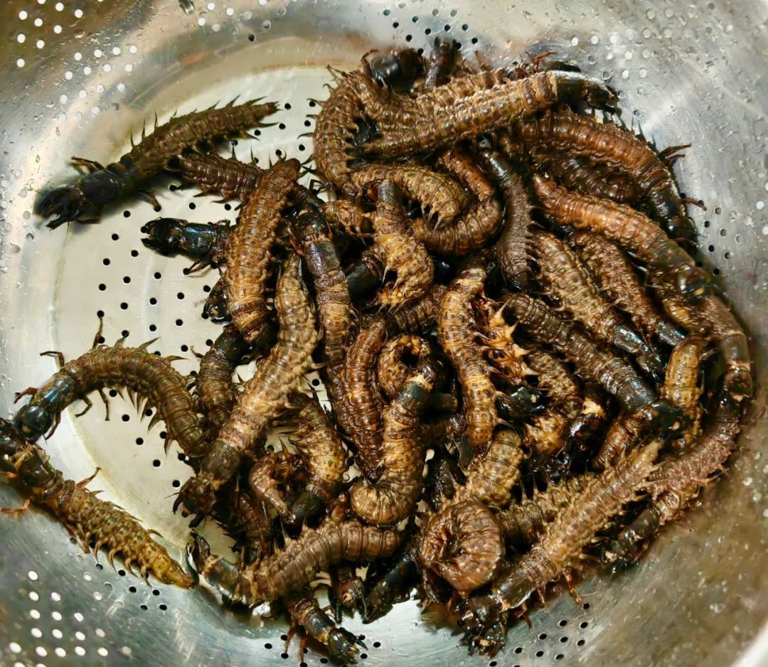 爬沙虫,学名中华大蛉蛾,它们身体呈墨绿或深褐色,头部较小,多脚,嘴巴扁平。虽然外貌有些丑陋,但却是不可貌相的美食。爬沙虫不仅美味,还具有很高的营养价值和药用价值。据中医认为,爬沙虫性温味甘,具有补气益肾、抑虚固本、滋补强壮的功效,被誉为“动物人参”。特别适合治疗老年人体虚夜尿频多、小儿尿床等症状。此外,爬沙虫能够刺激雄性激素分泌,可提高巨噬细胞吞噬能力,从而增强机体非特异性免疫能力。对人体内的结核分枝杆菌有很好的抑制作用,可以防治药物性肾损伤,对治疗肾病有很好的功效,还能增强人体免疫力,对抗癌也有一定的功效。
