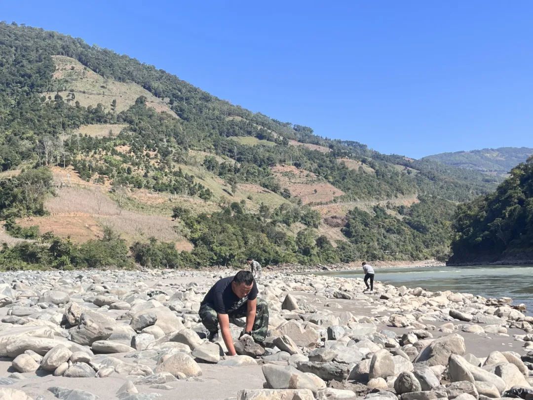 爬沙虫是卵向成虫之间过渡的幼虫,成虫长出翅膀能飞,在靠近岸边的石缝中产卵,在适宜的湿度和温度条件下,卵被孵化成我们通常说的爬沙虫。每年冬季怒江江水开始消退时节,木城的爬沙虫的美食季也就到了,阳光照耀在金黄的沙滩上,海浪轻轻拍打着岩石堆。此时,沙滩和岩石堆成为爬沙虫的家园。这些可爱的小生物正躲在缝隙中,等待着我们去发现。大家就会拿上瓶子工具兴致勃勃地开始了我们的寻宝之旅。在沙滩上仔细寻找,时而弯腰捧起一把沙子,时而翻开一块岩石,希望能找到它的踪迹。爬沙虫一出水,立即寻觅可以掘洞进入石头底下羽化的安全场所,它们用有力的下颚挖掘沙土,腹部的两排细足向后刨,那刨出的沙土堆,就是判断这个石头下是否有爬沙虫是否值得用力翻开的标志。经验丰富的抓虫能手只用轻轻拿起一块岩石,一只肥美的爬沙虫就出现在了他的手中。