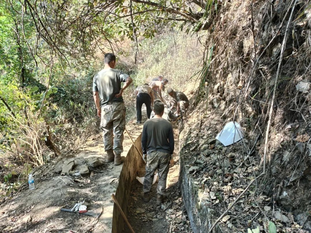 经鱼塘垭口村“两委”走访中发现,部分地方灌渠淤泥沉积严重,导致水流肠梗阻,直接影响农田灌溉。随即,该村党总支书记启动清淤保灌专项行动,及时请求驻地部队支援,对输水干渠及支渠展开集中攻坚。清理现场,党旗飘扬。村党员干部、群众、部队官兵发挥不怕脏不怕累的精神,手持铁锹与锄头,下到沟内把淤泥一铲一铲地挖出来,甚至徒手清理着淤泥、垃圾等堵塞物,干得热火朝天。村党总支发挥党建带群建的作用,积极认领渠段。大家分工合作,忙碌中有说有笑,营造出团结愉悦的氛围。据统计,本次专项行动共清理淤积渠道13公里,清淤量达7000立方米,累计补源水量超100万立方米,极大缓解了农田旱情,为农作物的茁壮成长和粮食丰收奠定了坚实基础。“大家伙很不错,上手很快!”木城乡鱼塘垭口村党支部书记杨祖方高兴地说:“村里青壮年劳动力几乎都到外务工去了,实在找不到多余的劳动力。好在他们赶来帮忙,为群众做了件实实在在的大好事,切实减轻了种植户抢耕抢种的负担,非常感谢他们。”“我听说连队要开展水渠清淤工作,就主动报名参加了,多个人多份力。”一位驻地部队官兵说。一幕幕互帮互助的场景画面,无不展现着军民间浓厚的情谊,“鱼水情”一词在此刻显得更为具象化了!