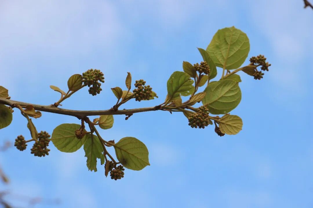 鱼蛋菜的名字源于它独特的形态——那团簇的花苞,密密麻麻,宛如鱼籽般晶莹剔透。它的叶片形似柿子叶,却比柿子叶更加鲜嫩。当花苞即将绽放时,五个花瓣、五个花蕊的雏形已经形成,散发出浓郁的香气,吸引着勤劳的小蜜蜂前来采蜜。