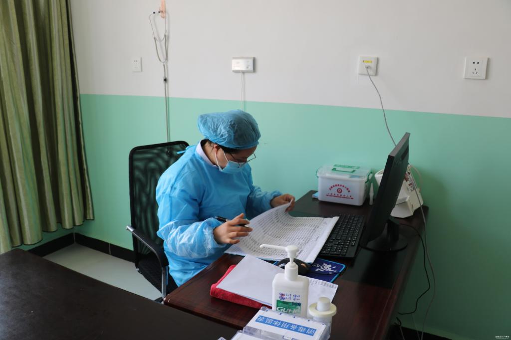 “说不想儿子、不担心肚子里的孩子是假话,但我会一直坚持下去,直到打赢这场阻击战,直到春暖花开。”耿富梅说。在碧寨乡卫生院发热诊室里,耿医生穿着隔离服,坐在办公桌前,拿着就诊病人登记册正在打电话,跟踪发热病人出院后的身体状况。每天坐诊8到10个小时,是发热诊室的常态。对于一般人来说,都会有点吃力,更何况是怀有5个多月身孕的耿医生,在疫情防控一线,在自己身体不方便的情况下仍然主动请缨,因为她觉得既然作为一名白衣天使,大家的安危是大事,她说她知道自己的身体状况,她能够坚持带着自己肚子里的孩子共同克服这段非常时期。“面对疫情,每天连续工作数小时,我都不怕,可是当我看见我的儿子……”说到这儿,耿富梅有些哽咽。她的大儿子才一岁多,每天都会找妈妈,但是耿富梅一直在疫情一线,已经数不清有多少天没见到儿子了,最难过的就是每天和不懂事的孩子视频时,听着她叫妈妈抱时,心里就觉得亏欠他太多。但她说:“关键时刻就得大家一起上,我是医生,是大家的守护神,我就不能退出,必须奋战在一线。”