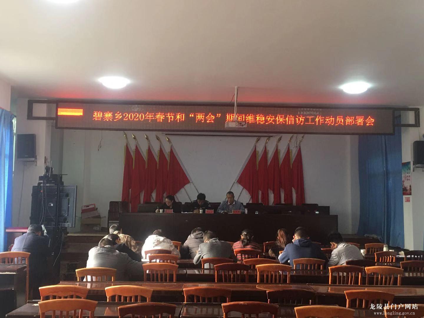 1月8日,碧寨乡召开2020年春节和各级两会期间维稳安保信访工作动员部署会暨碧寨乡道路交通安全、禁毒工作会,各村(社区)分会场和乡级主会场共计70余人参会。
